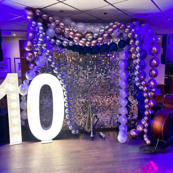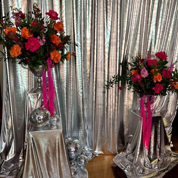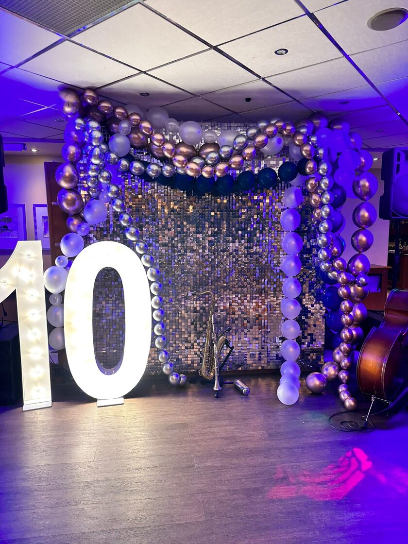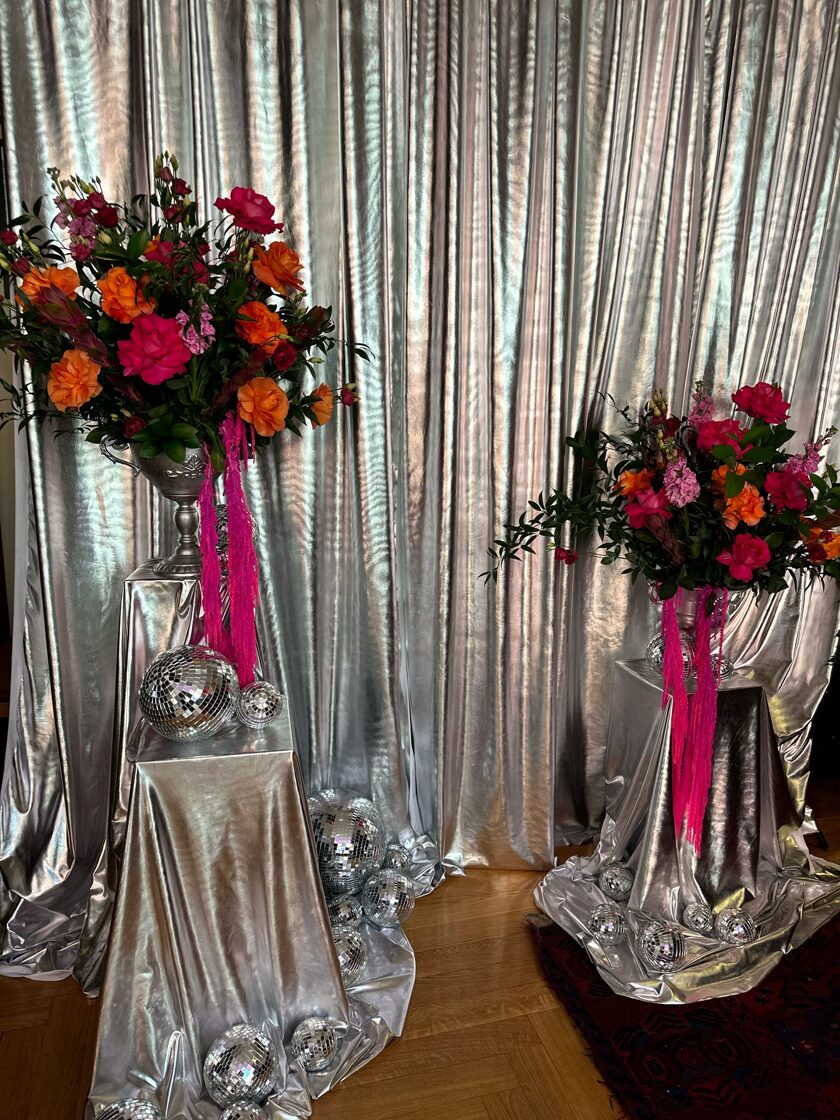 Brendots fons, baloni, ziedi, podests, paklājs = 350 Eur