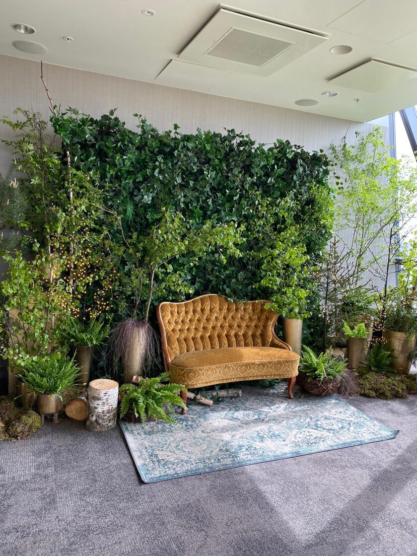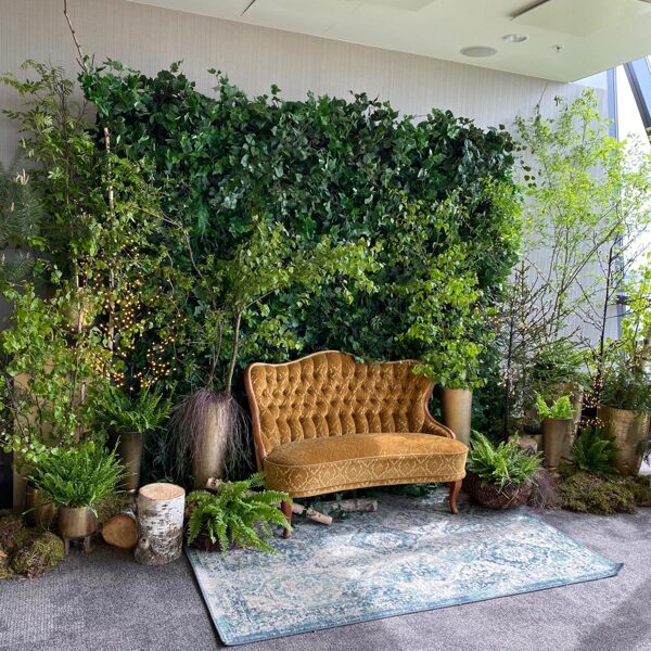 Foto zona ar 5 ziedu statīviem (zīda ziedi, dzīvie zaļie augi), zieda sienu = 350 Eur