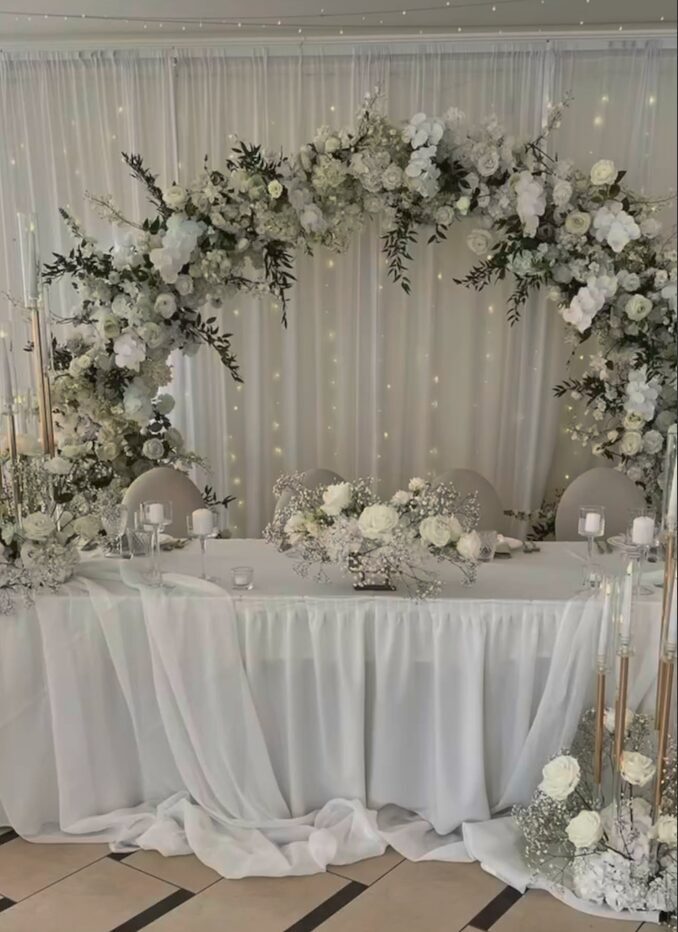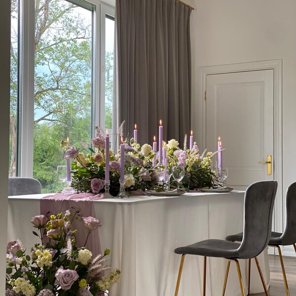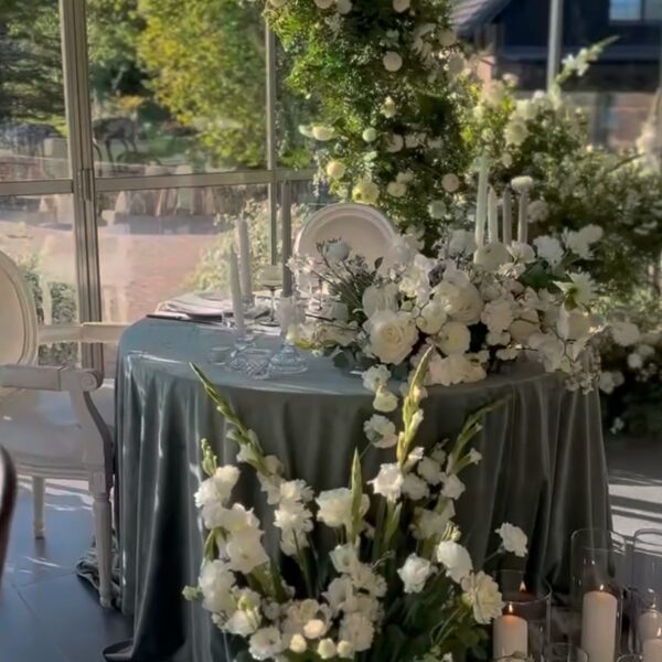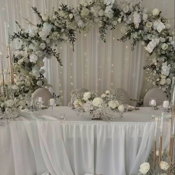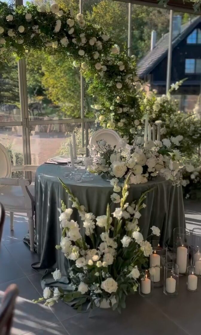 Bieži jaunā pāra galda noformējumā izmantojam tos elementus, kas tika izmantoti laulību ceremonijā, un tos pārnesam uz svinību zāli pirms svinību turpinājuma.