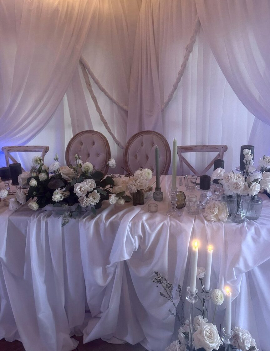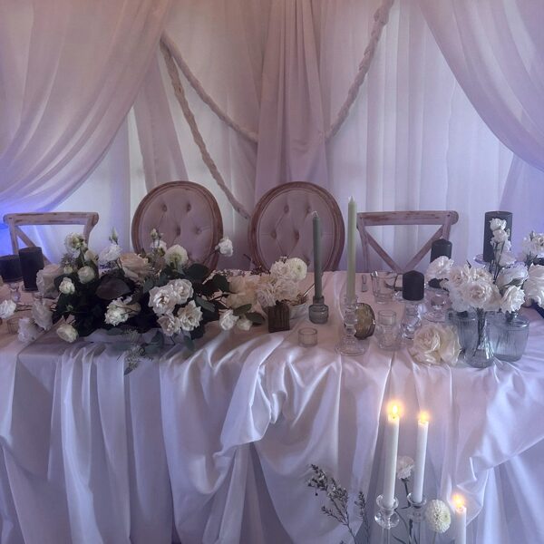 Piedāvājam visdažādākos jaunā pāra galda risinājumus, kur izmantori ziedi, sveces, audumi, augi, gaismas objekti utt.